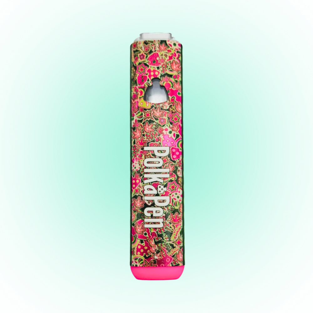 The Polka Pods 2g Empty Cart features a sleek pod-style design, smooth airflow, and premium build quality. Each cart is empty and ready for filling, with an Indica-style design theme and multiple packaging styles available.